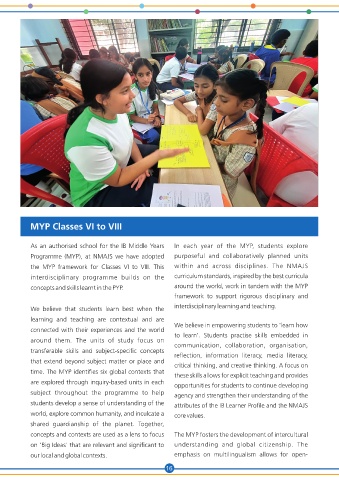 the MYP framework for Classes VI to VIII. This within and across disciplines. The NMAJS