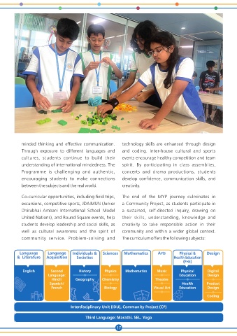 Co-curricular opportunities, including field trips, The end of the MYP journey culminates in