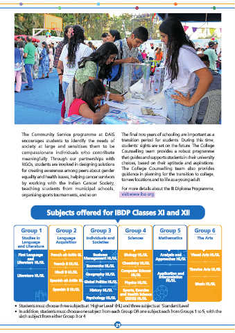 The Community Service programme at DAIS The final two years of schooling are important as a