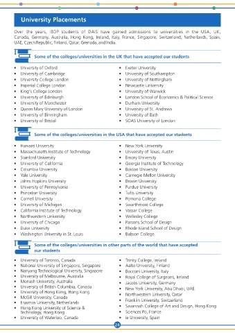 Over the years, IBDP students of DAIS have gained admissions to universities in the USA, UK,
