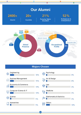 Our Alumni 2400+ 20+ 21% 52% Others Canada 3% 3% 6% 12 8 28% Global Occupational 80 Presence Profile India 60% Majors Chosen 26