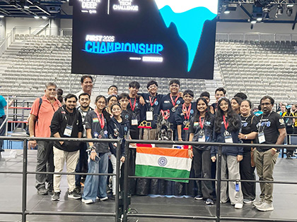 DAIS school robotics team, Elev8 made history as the first Indian team ever to win a Regional event as Alliance Captains. Building on the experience they gained at the Turkish regional earlier in the season, they engineered a record-breaking performance at the FRC World Championship. At the Houston World Championship, Elev8's innovative robot design and seamless teamwork captured attention in the fiercely competitive Galileo Division. They battled through qualification matches and advanced to the playoffs — further than any Indian team in history. Elev8's clever robot design and unique strategies were recognised by winning the Creativity Award at the Championship. Their journey has not only raised the bar for Indian robotics but inspired a new generation of builders and dreamers to push the boundaries of innovation and teamwork.