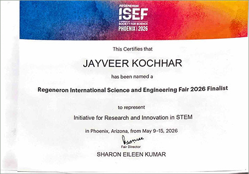 Jayveer Kochhar of IBDP Y12 Selected as ISEF 2026 Finalist; Earns Prestigious STEM Recognition
