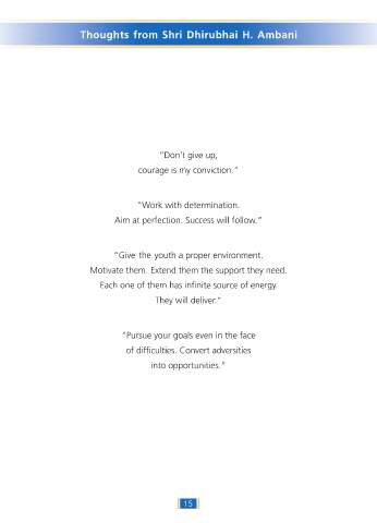 Thoughts from Shri Dhirubhai H. Ambani Each one of them has infinite source of energy. 15