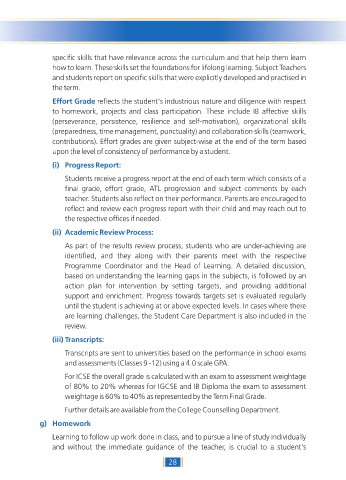 (preparedness, time management, punctuality) and collaboration skills (teamwork,
