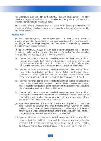 intention to withdraw that their child, the refund of Tuition Fee, Term Fee and other