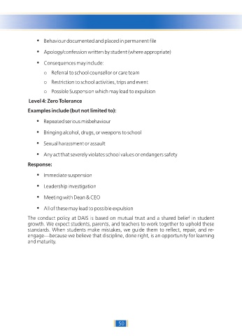 The conduct policy at DAIS is based on mutual trust and a shared belief in student