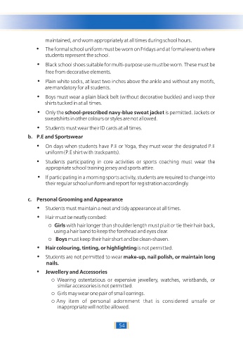 Ÿ Only the school-prescribed navy-blue sweat jacket is permitted. Jackets or