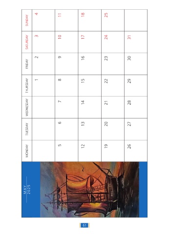 4 11 18 25 3 10 17 24 31 2 9 16 23 30 1 8 15 22 29 7 14 21 28 6 13 20 27 5 12 19 26 AY 2 0 2 5 M 61