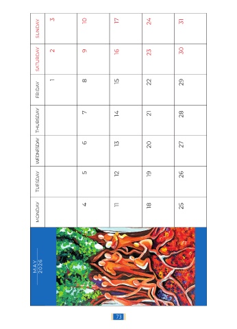 SUNDAY 3 10 17 24 SATURDAY 2 9 16 23 30 31 1 8 15 22 29 FRIDAY THURSDAY 7 14 21 28 WEDNESDAY 6 13 20 27 5 12 19 26 TUESDAY MONDAY 4 11 18 25 M A Y 2026 73
