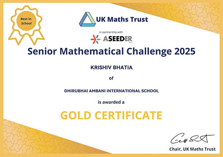 In addition to this remarkable literary honour, Krishiv has also demonstrated extraordinary mathematical prowess. He earned a Gold Medal in the UKMT – UK Senior Mathematical Challenge with an exceptional score of 117/125. His high score has qualified him for the British Mathematical Olympiad (BMO) Round 1, one of the most rigorous and selective problem-solving contests for pre-university students worldwide.