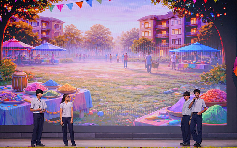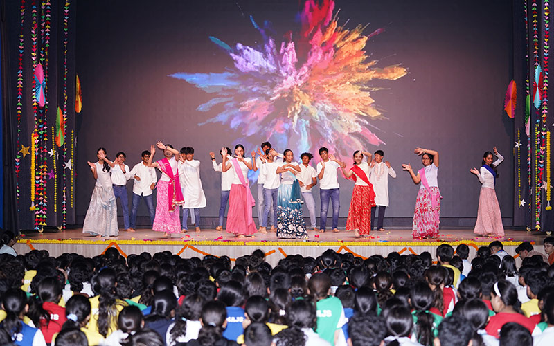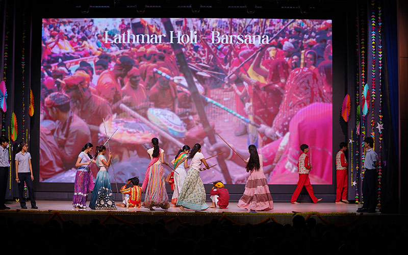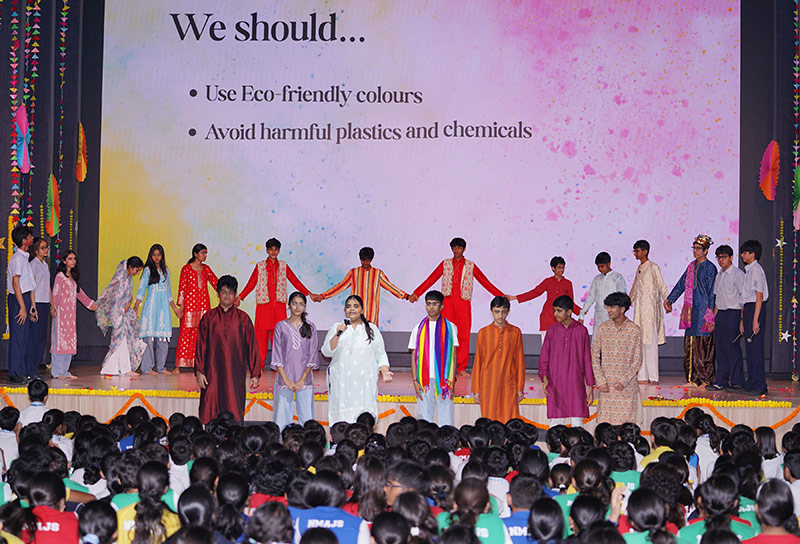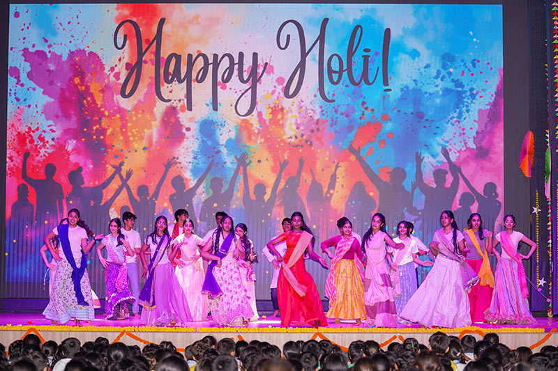 On February 27, the students of Grade 9 presented a vibrant and colourful assembly to celebrate Holi. The programme highlighted the legend of Holika Dahan, explaining the cultural and mythological significance of the festival. Students also showcased how Holi is celebrated across different parts of the country, reflecting the diversity and unity embedded in Indian traditions.