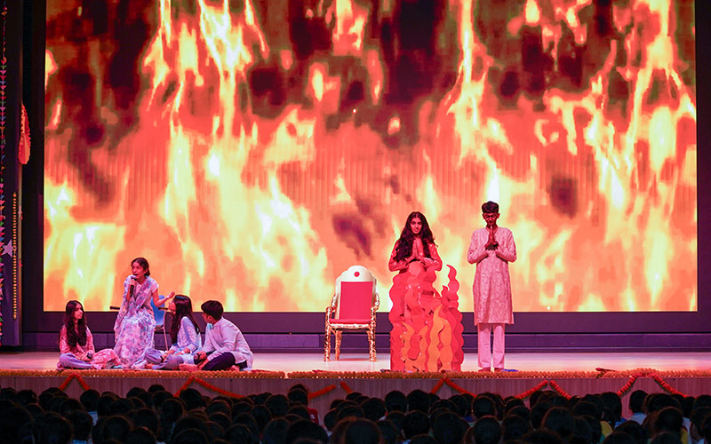 Through engaging enactments and performances, they emphasized the importance of celebrating responsibly, respecting personal boundaries, promoting eco-friendly practices, and being mindful of others’ comfort and safety. The assembly was student-led. Learners volunteered to draft the script, enact the legend, choreograph the dances, and manage the technical aspects of the programme.