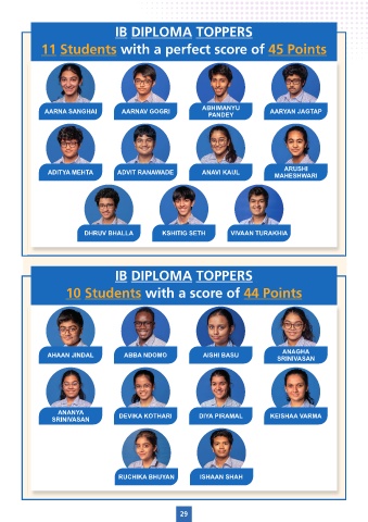 • The School's average Diploma score is 39.4 points (Worldwide: 30.24; India: 31.95) AARNA SANGHAI AARNAV GOGRI PANDEY AARYAN JAGTAP