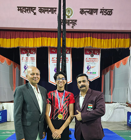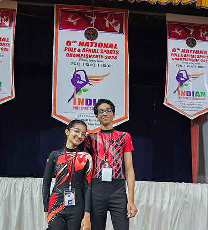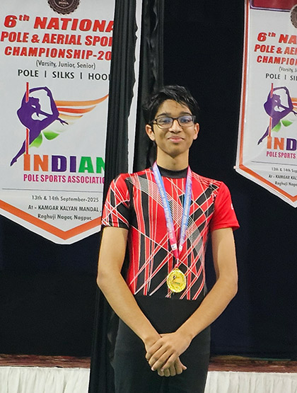 Vir Gahrotra of IBDP Grade 11 has achieved a remarkable milestone at the 6th National Pole and Aerial Sports Championship 2025. Competing in the highly competitive Junior B Category – Men’s Aerial Silk, Vir delivered an exceptional performance and secured the Gold Medal.