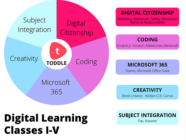 Throughout their Primary years, students will formalise and utilise coding language and skills. Classes I and II build on their concepts through various applications that involve mapping and simple programming. Classes III to V develop their coding skills further by creating structures, simulating environments virtually and programming, using Minecraft, MakeCode and Scratch. Devices such as Jiobooks and iPads help students learn technology, learn about technology and learn through technology. As students begin to participate in digital communities, a strong emphasis is placed on digital safety and citizenship.