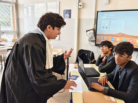 The third day began with the grand opening ceremony at the Galileo Galilei School where the delegates were introduced to this year's theme, “Brave New Frontiers”, one that pushes delegates to dream bigger, think deeper, and embrace the unknown as a canvas for innovation, progress, and re-evaluation, while maintaining global unity in doing so. Post-ceremony, and after a good scoop of authentic Italian gelato, the delegates headed towards one of the most iconic buildings of Rome, the Colosseum, taking them on a brief journey through time from 44 BCE to the present day, as we strolled past the Mighty Tiber, a Brute-al battlefield for major power dynamics in the Roman Empire, the "Mouth of Truth" (Bocca della Verità) an ancient marble mask, the Arch of Constantine, and the historical Roman Forum standing beside its modern counterpart– the United Nations Headquarters (Food and Agricultural Organisation) showcasing the universal balance that Rome has perfected, once again resonating with the theme of the conference– “Brave New Frontiers”, one that aligns itself with the school’s vision of nurturing global citizens firmly rooted and proud of their cultural background but sailing confidently into the future. The day concluded with the delegation and their hosts enjoying some bowling.