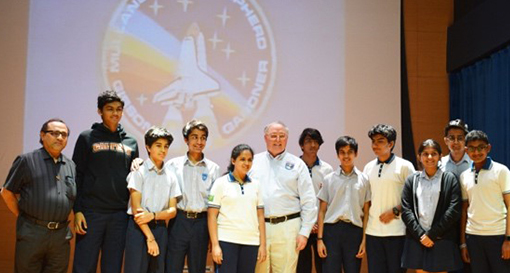 Jerry Ross is a renowned astronaut and the record holder for the most space flights. Dhirubhai Ambani International School and Purdue University collaborated with The Cultural Affairs Department and the US Consulate General Mumbai for the visit of inspirational NASA astronaut Col. Jerry Ross. This interaction informed us about his experiences, goals and challenges through which we learnt important life lessons. Through this outreach we realized the vast horizon of opportunities available for us in the field of STEM. It also helped us spread the message FIRST globally.