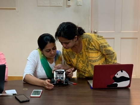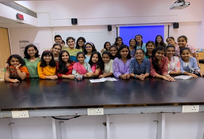 We conducted an 4-week Robotics workshop for girls from grades 5-9 at Dhirubhai Ambani International School. We successfully achieved the purpose of the workshops by spreading awareness of STEM and FIRST programs. We guided the students through the construction of lego robots and EV3 bricks. We also addressed the various aspects of FIRST programs like outreach, construction and programming.