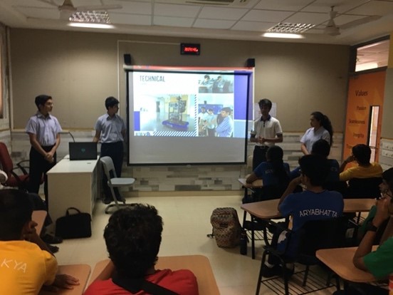 The team held an Alumni meet at Dhirubhai Ambani International School wherein former team members from Team R-factor and Team Elev8 visited us. They shared their personal experiences which enabled us to learn from their mistakes and propel our way forward as the competition approaches. Not only did they give us an insight of how to improve and work more efficiently but, they also encouraged us to do so by sharing certain challenges they faced and how they overcame them. Our interaction with them enabled us to recognise mistakes and effectively correct them.
