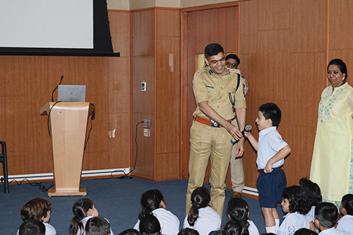 Mumbai-ACP Chaudhary and his team of officers spent a wonderful morning interacting with the students of Class 1, for spreading awareness on General Safety Rules to be practised in our day to day lives. This message was imparted through very enjoyable activities, which were fun as well as informative.