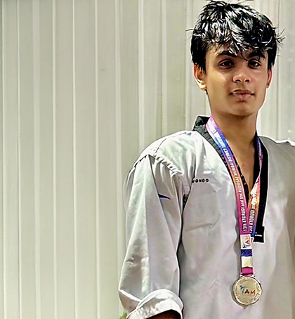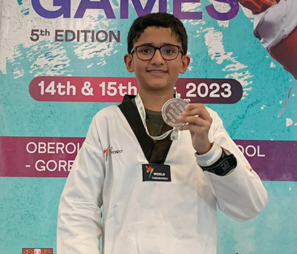 Zahaan Kapadia of Class 10 B achieved a commendable feat by securing a Silver medal in the under-17 years age category at the Maharashtra State Taekwondo Tournament held in Mumbai.