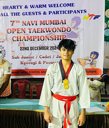 DAIS student Zahaan Kapadia of Class 10 B has demonstrated exceptional skill and dedication, winning two gold medals at the 7th Navi Mumbai Open Taekwondo Competition. Zahaan's consistent hard work and resilience have propelled him to this impressive victory. Congratulations!