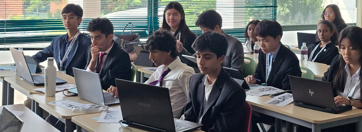 Sixteen students from grades 9 to 11 and two teachers represented DAIS at THIMUN Singapore 2024, held from October 27 to November 2. Among them, Aanya Shah (11) served as Deputy Secretary General, while Anoushka Tandon (10A) and Apoorv Gupta (10A) held positions as Deputy Chair of GA1 (DISEC) and President of the Security Council, respectively.